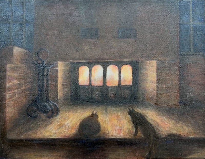 続きを読む...講師の杉本です。 今回は、渡邉会員様の油絵をご紹介します。 夜の室内にて、暖炉に照らされた猫たち。 火を見つめる姿が、逆光のシルエットにより表されています。 光の筆 […]